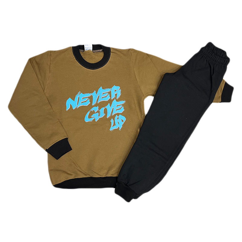 Σετ φόρμα never give up καφέ(γαλάζιο)/μαύρο