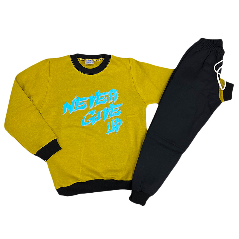 Σετ φόρμα never give up μουσταρδί σκούρο(γαλάζιο)/μαύρο