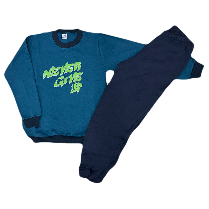 Σετ φόρμα never give up πετρόλ/μπλε