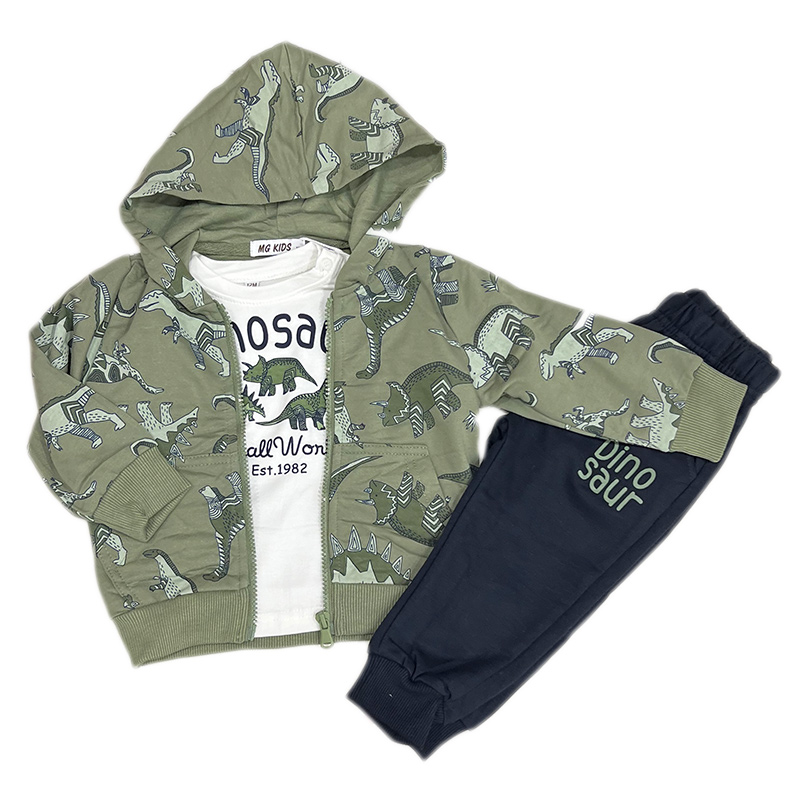Φόρμα 3τμχ δεινοσαυράκια χακί