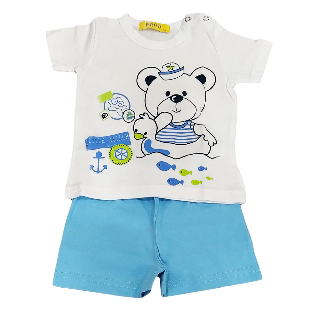 Πιτζαμάκι με αρκουδάκι λευκό-γαλάζιο