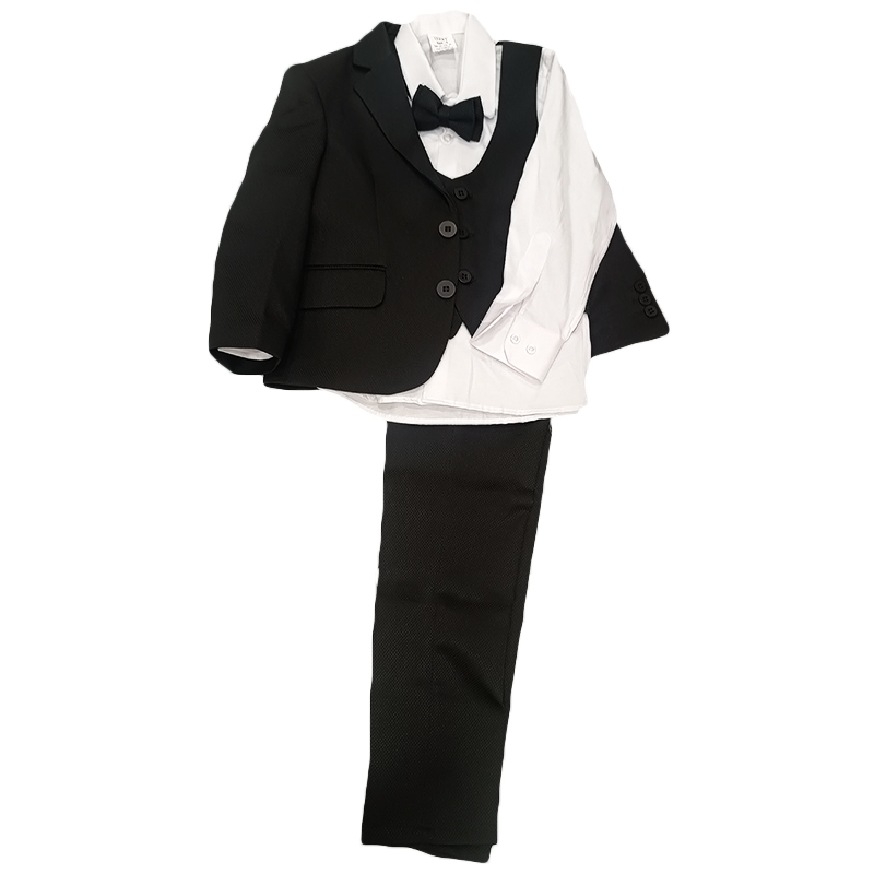 Περιέχει πουκάμισο, σακάκι, γιλέκο, παπιγιόν και παντελόνι