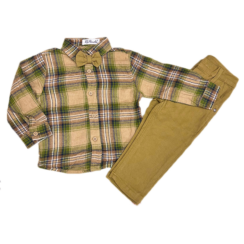 Σετ με πουκάμισο φανελένιο μπεζ(πράσινο)