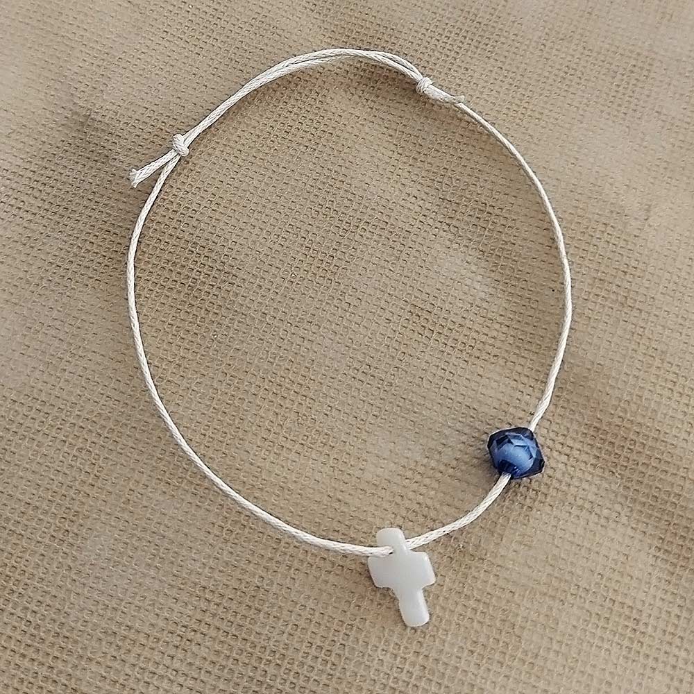Μαρτυρικό βραχιολάκι με λευκό φίλντισι σταυρό & μπλε μπίλια