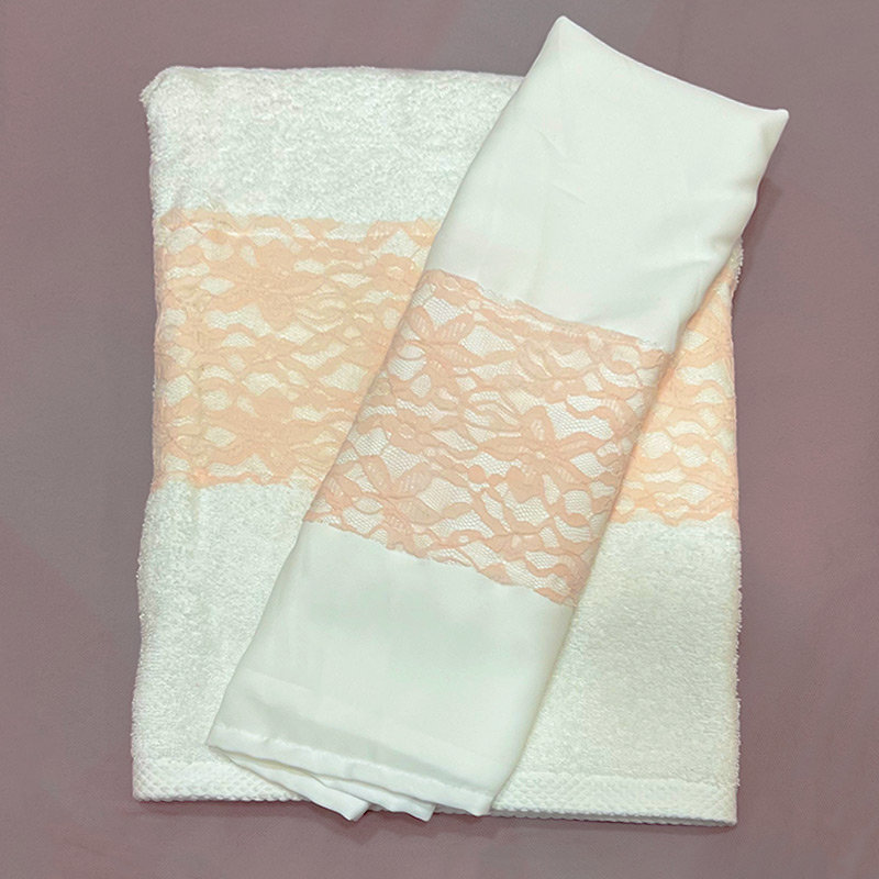 Βαπτιστικά λαδόπανα ιβουάρ-σομόν με δαντέλα