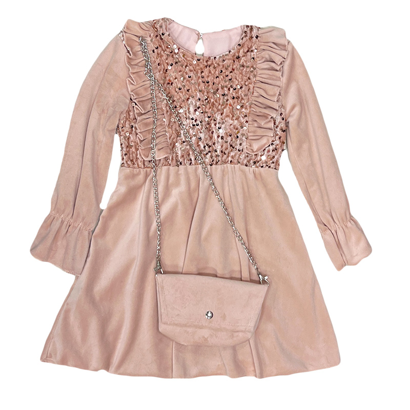Φόρεμα βελουτέ με πούλιες σάπιο μήλο