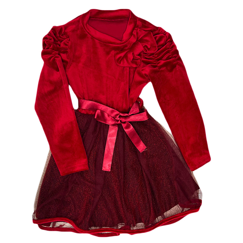 Φόρεμα βελουτέ μπορντό με γκλίτερ