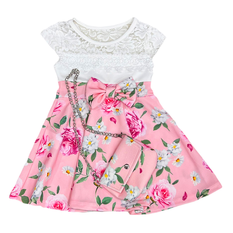 Φόρεμα λευκό/ροζ με τσαντάκι