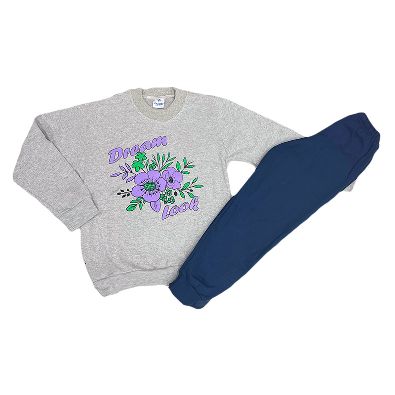 Σετ φόρμα λουλούδια γκρι/μπλε