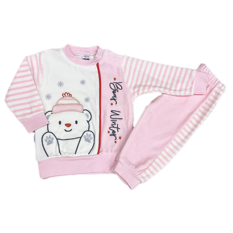 Φόρμα βελουτέ αρκουδάκι ροζ
