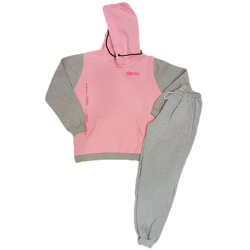 Φόρμα με κουκούλα ροζ/γκρι