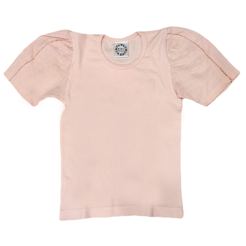 Μπλουζάκι ροζ με σχέδιο στο μανίκι