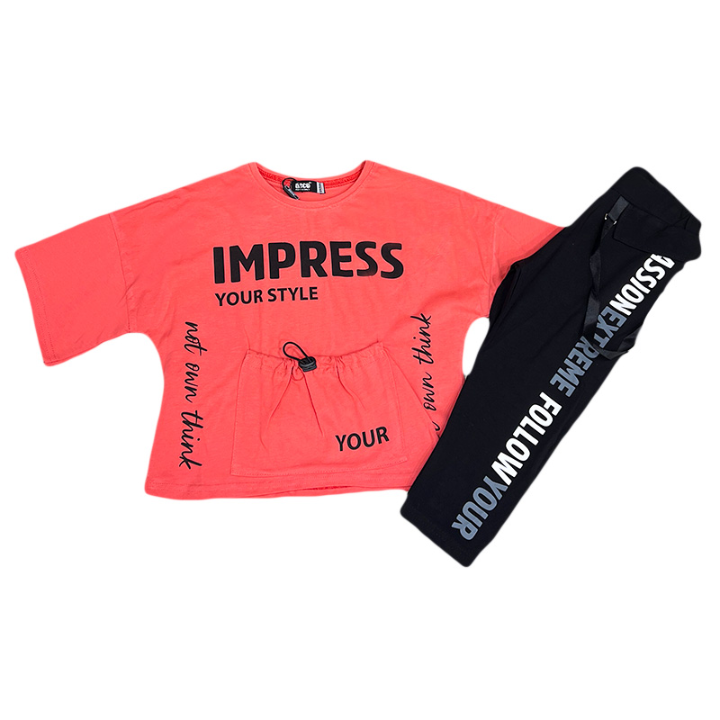 Σετ κοντομάνικο με κολάν impress κοραλί