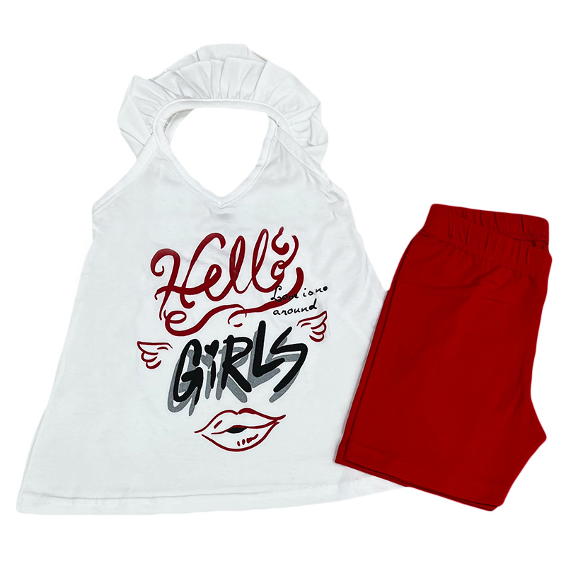 Σετ με σορτς hello girls λευκό/κόκκινο