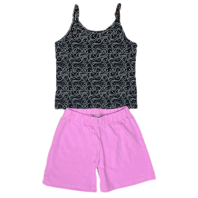 Σετ τοπ/βερμούδα μαύρο/ροζ