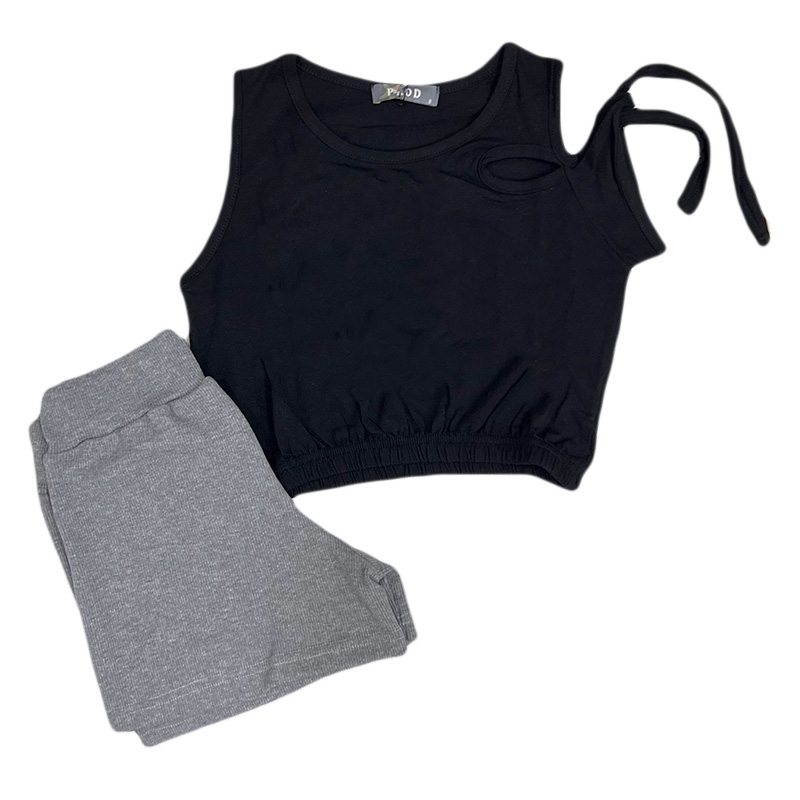 Σετ crop με σορτσάκι μαύρο/γκρι