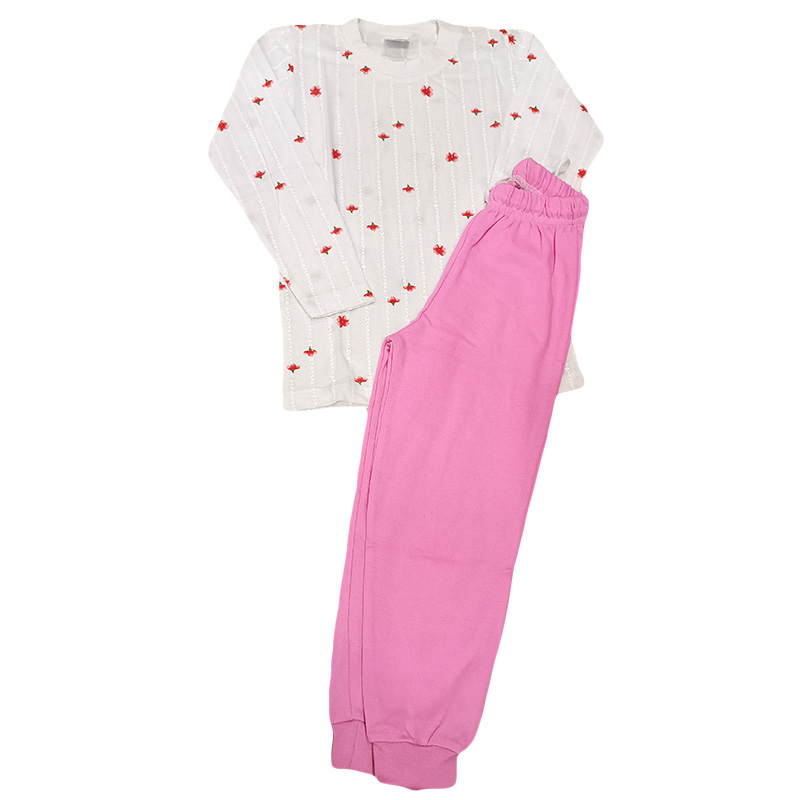 Πιτζαμάκι λουλουδάκια λευκό/ροζ