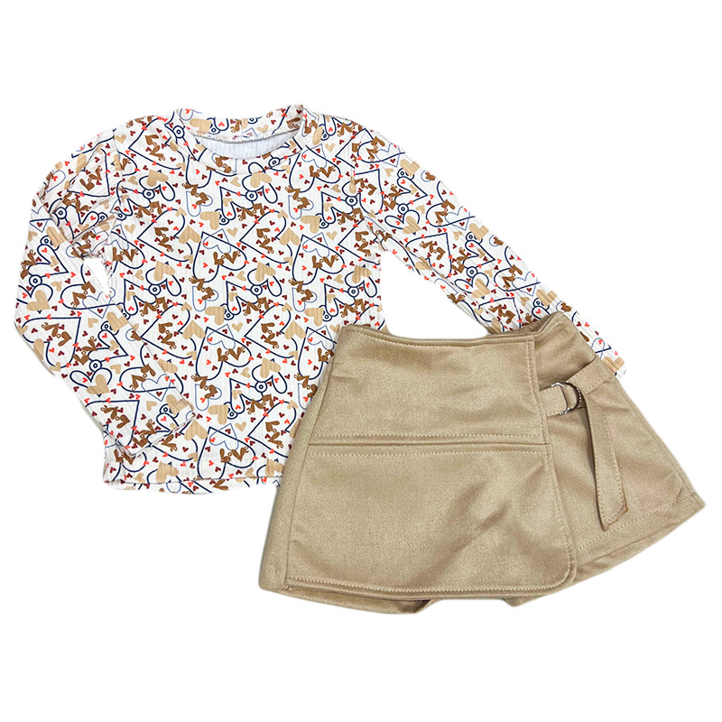 Σετ με σορτς/φούστα σουέντ μπεζ