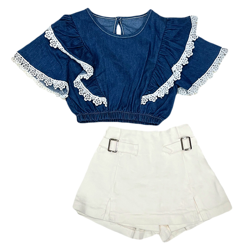 Το μπλουζάκι είναι ριπ με έναν ώμο και το σορτσάκι  υφασμάτινο