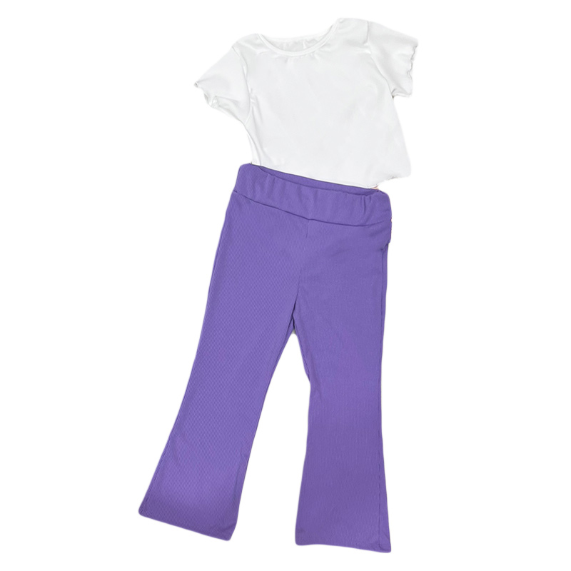 Σετ ριπ με παντελόνα λευκό/μωβ