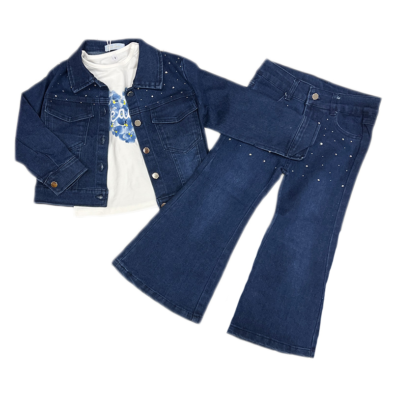 Το παντελόνι και το τζιν μπουφανάκι έχουν στο πάνω μέρος στρασάκια